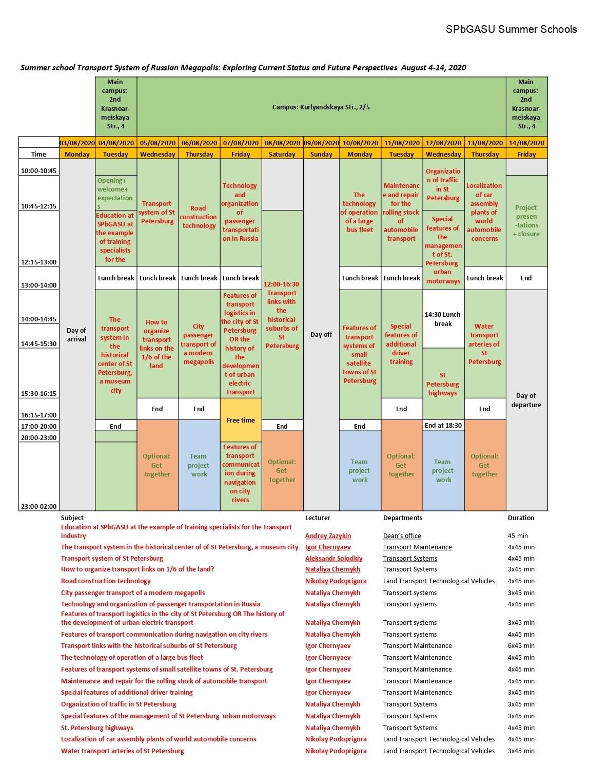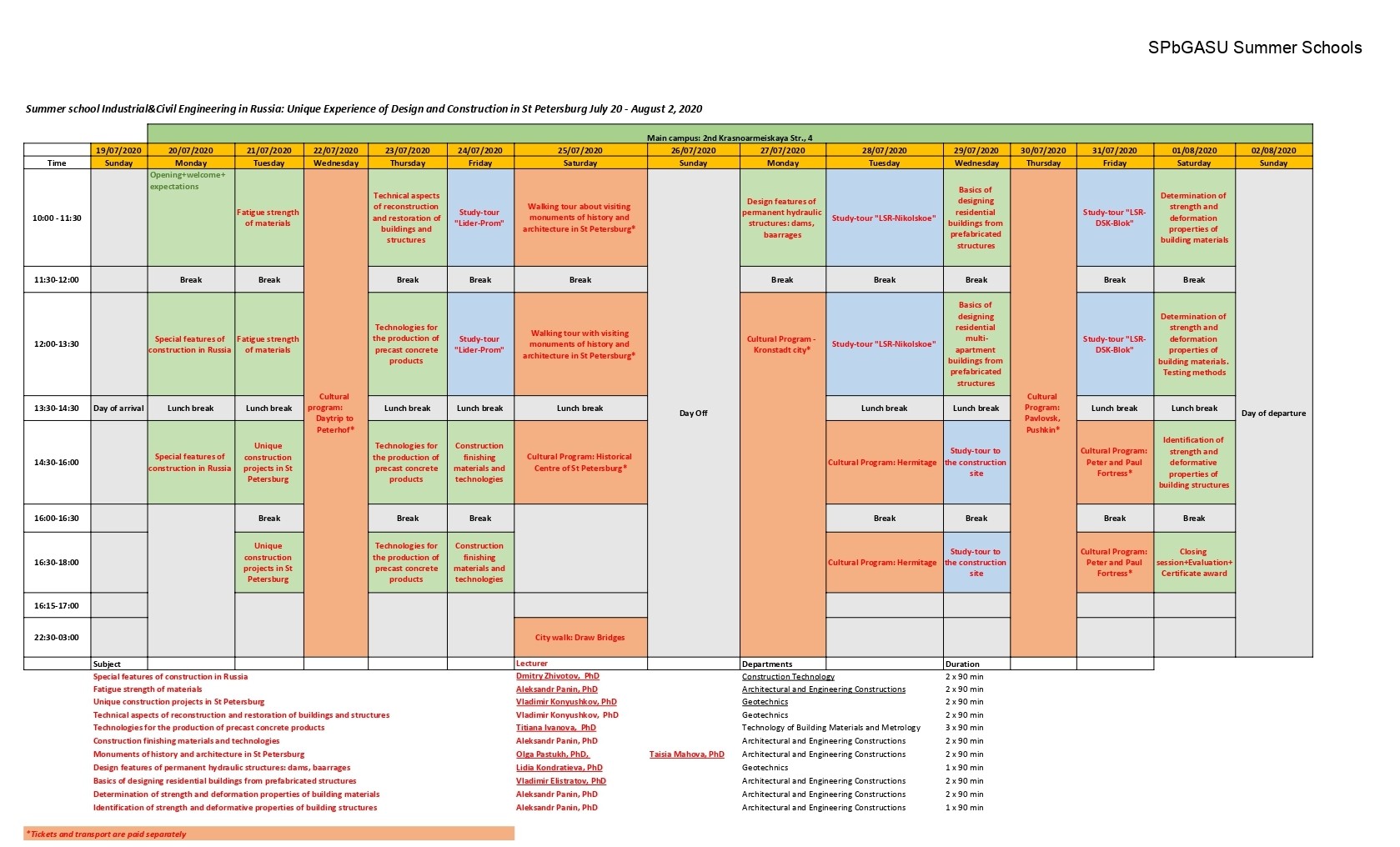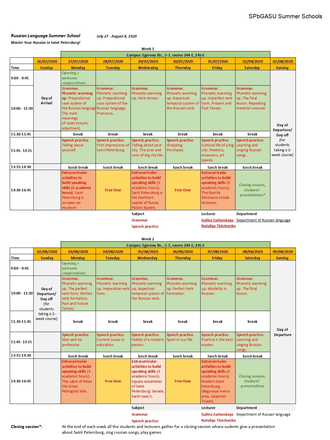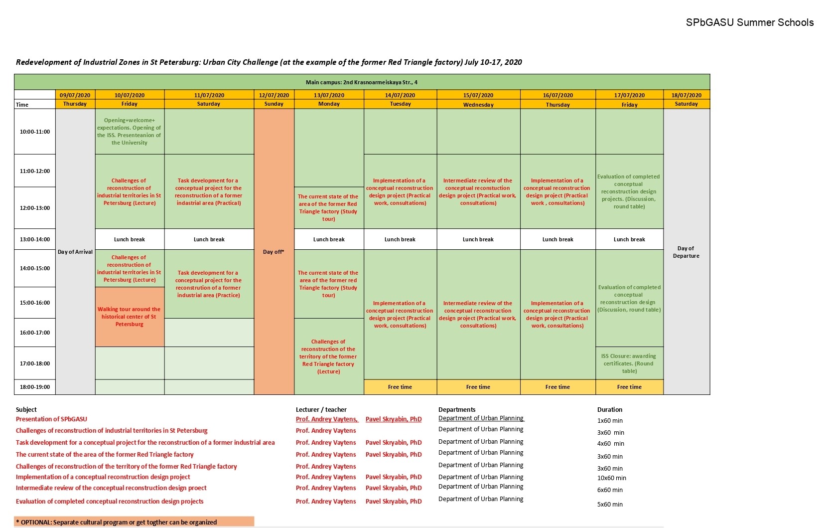 1 Most classes take place in SPbGASU main campus, except study tours and excursions.